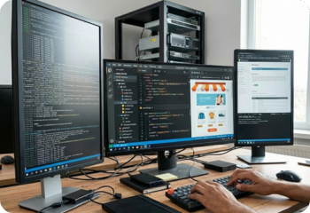 Desarrollo e-commerce rápidos, seguros y optimizados para que tu negocio funcione 24/7.